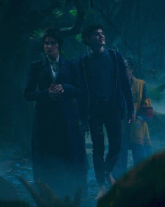Let’s unpack that claim real quick. Billy, in episode 3, says the Road is “just like I imagined it” suggesting that the basic appearance of the Road was pulled directly from his imagination. He is also familiar with the overall aesthetic of every trial: he specifically calls out the vibe of the first one; for the second we know he’s a huge fan of Lorna and her version of the Ballad; the third is a pretty stereotypical cabin in the woods, sleepover type horror setting and he has similarly themed posters in his 16yo room; and the fourth trial it straight out of his 13yo bedroom. People have also pointed out that furniture from his bedroom sets gets reused in some of the trials. Even the morgue imagery we see for what’s presumably Billy’s trial makes sense when we consider he knows he died and came back to life.