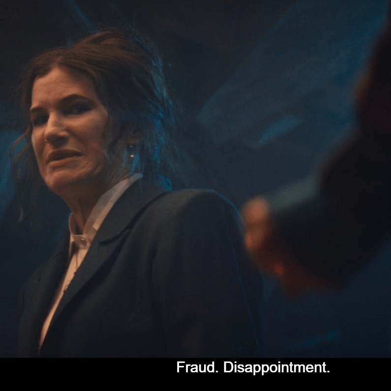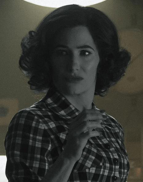 Up to this point, Agatha’s mask has slipped, the scene plays largely sincerely and she’s trying to reason with him and defend herself. This is the turning point. The mask goes back in place and she calls out what she sees as the same hypocrisy as Wanda; the “tell” they both share.