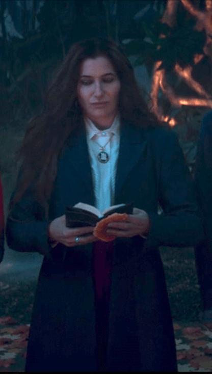 The beginning of episode four is really telling. Up until Sharon died, Agatha didn’t expect the trials to be deadly because she thought Billy didn’t have it in him to kill someone, especially someone innocent like Sharon. Her response to Billy criticizing them, “We didn’t look out for each other. That was our fatal mistake”, was to quip “Well it was fatal for Mrs Hart” and look right at Billy. Then his comment “I wish we could go home” is met with a look of consternation, like “do you really now? You started this”. His comment “People can’t be replaced” gets a challenging “can’t they” (she saw Wanda “replace” Vision and if she does suspect he’s Billy by this point then she also knows he had to have jumped bodies). However, she then pivots immediately to the idea of summoning a “backup” green witch, indirectly invoking Billy’s spellbook. He has exactly the spell they need (how convenient).