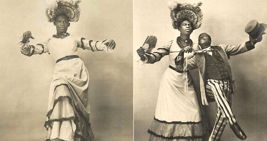 The term “drag”, as it refers to men wearing feminine clothes for the purposes of entertainment, can be traced to May 30, 1870, in an article titled “The Men in Women’s Clothes” from the British magazine The Times. As far as we can tell, Swann was the first to combine this with “queen”, most likely coining the phrase “queen of drag”, which led to our modern term “drag queen”. The actual practice of cross-dressing for entertainment is likely older than we can trace, and has ranged from socially unacceptable to perfectly “normal”. But in Swann’s case, it was not at all “socially acceptable”. The “House of Swann” was secretive, and gave out invitations at places like the YMCA, which had come to D.C. in 1852. Drag ball participants, dressed elegantly, often performed the “cakewalk”, a dance originating in the 1850s, wherein they moved about the space with a partner in a comical mockery of the formal dances of White enslavers. They would strike poses as they danced, which was an early inspiration for the voguing dance of the later Harlem ball scene. Swann’s brother, Daniel, made ball gowns and participated in the drag community as well.