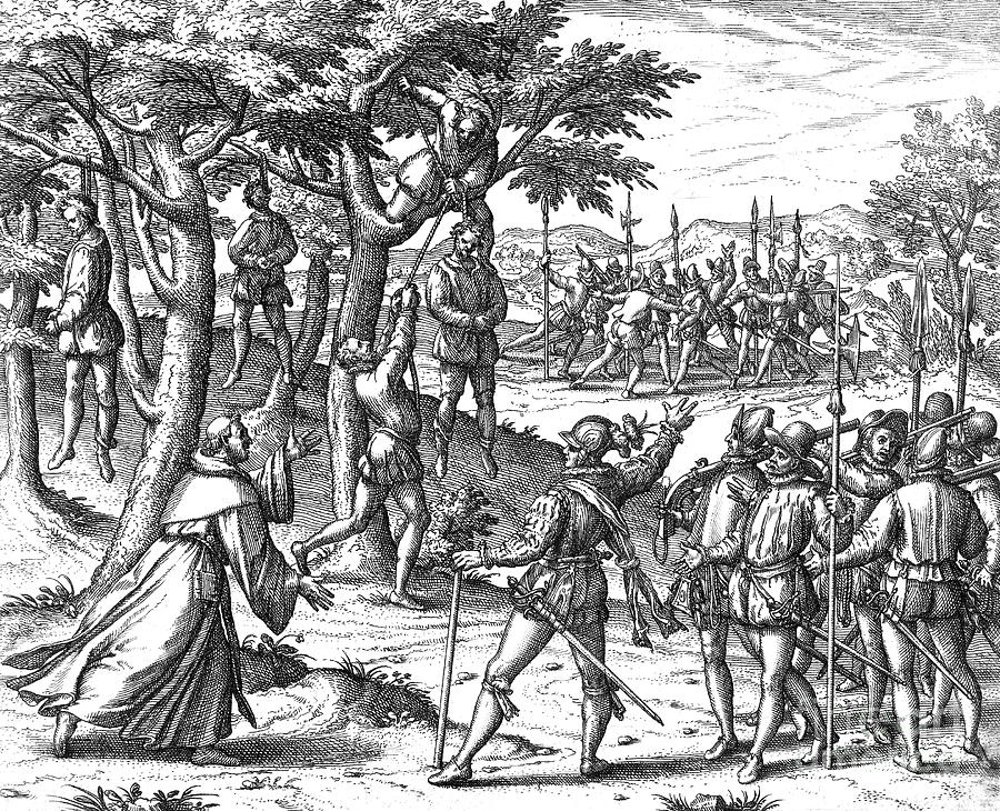 Reality: Columbus demanded gold from the Natives he happened upon. If they failed to bring back gold, he would cut off one of their hands. Their second failure would result in the loss of their other hand, and the third would mean they would lose their life. Since there was little to no gold on the island he “discovered,” he ended up killing the island’s inhabitants.